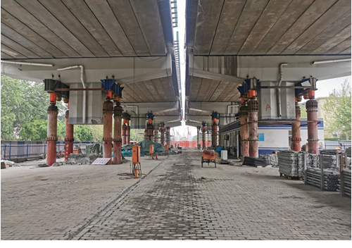 南二環(huán)紅旗大街跨線橋整體頂升到位