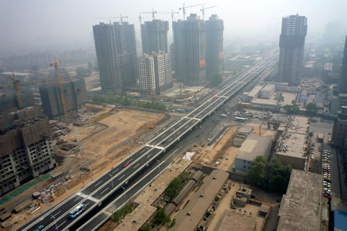| 和平路是石家莊市北翼東西向的一條城市主干道,是石家莊市總體規(guī)劃中的“四橫”之一。和平路跨線橋(紅軍街——棉一立交橋)工程始于紅軍大街,跨越中華大街、九中街、北新街、車輛廠前街、京廣線、勝利大街、平安大街、長征街后與棉一立交橋連接,高架橋全長3616米。 由我公司承建的一標(biāo)段西起紅軍大街,東止于北新街東220米,總長1621.267m,由高架橋梁、道路、排水管道、道路照明等工程項(xiàng)目組成,是全線三個標(biāo)段中工程量最大的標(biāo)段。2009年4月30日主橋主路正式通車,比預(yù)定工期提前了10個月。 “和平路跨線橋工程的建成通車,標(biāo)志著省會城市基礎(chǔ)設(shè)施建設(shè)翻開嶄新的一頁,對完善市區(qū)路網(wǎng)結(jié)構(gòu)和改善市民出行環(huán)境、進(jìn)一步改善城市面貌意義重大。”---燕趙晚報(bào) 2009年5月1日 頭版
