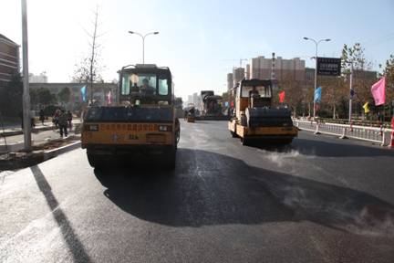 為保證質(zhì)量,確保工期,我公司充分發(fā)揮機(jī)械化施工優(yōu)勢,采用3臺大型銑刨機(jī)同時作業(yè),僅用2個晚上就完成了新石北路以北700米快慢車道的銑刨任務(wù)。同時,由于該工程是冬季施工,為防止嚴(yán)寒低溫天氣對工程質(zhì)量造成影響,公司采用了RH溫拌改性瀝青工藝,這是我市首次采用這一工藝。該工藝通過使用RH溫拌改性劑材料制備溫拌瀝青,在不降低混合料性能的情況下,有效保證了低溫環(huán)境下瀝青混凝土攤鋪質(zhì)量。